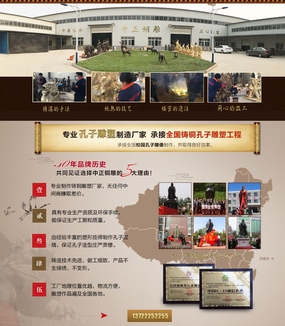 河北中正銅工藝品制造有限公司是一家具有獨(dú)立設(shè)計(jì)、雕塑、鑄造、制作施工能力的單位。擁有完善的,大型的,先進(jìn)的生產(chǎn)設(shè)備,并由多位經(jīng)驗(yàn)豐富的高級(jí)鑄造技師指導(dǎo)生產(chǎn)及制作。公司主要鑄造銅關(guān)公,九龍銅關(guān)公,福建銅關(guān)公,臺(tái)灣銅關(guān)公,關(guān)羽雕塑,鑄銅關(guān)公,銅雕關(guān)公,1米銅關(guān)公,2米銅關(guān)公等,可按客戶(hù)提供動(dòng)物銅雕圖片訂做加工銅關(guān)公,九龍銅關(guān)公,做工精美,質(zhì)量保證。
